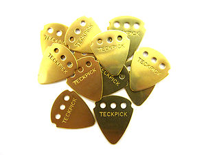 Làm bằng chất hóa học “celluiloid” theo hình đồi mồi loại nặng, theo tôi thấy loại nó có âm sắc ấm khi đánh vào dây. Rất gọn khi cầm không mất nhiều chỗ trên ngón cầm.